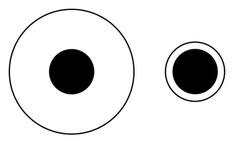 Одинаковое количество еды выглядит по-разному в большой и маленькой тарелке. Этот феномен является результатом оптической иллюзии Дельбёфа (см. рисунок). Два одинаковых черных круга, окруженные кольцами разного диаметра, кажутся нам отличными друг от друга. Поэтому в большую тарелку человек всегда кладет больше еды.